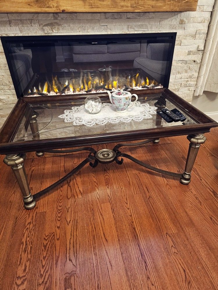 Beautiful 3 piece glass living room set Very Clean & well maintained. Includes: Side table: 24"W × 26"L × 21.5" H Coffee table: 28"W × 48"L × 21"H Console table: 19"W × 55"L × 31.5"H Asking $300 OBO Selling as a set. Serious inquires only! Must be able to pick up items.