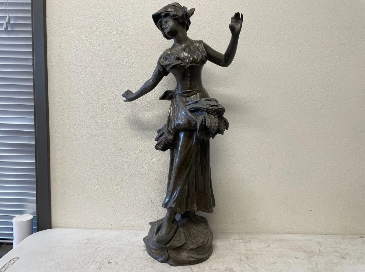Girl with a Basket" by French sculptor Auguste Moreau Bronze Statue 27”