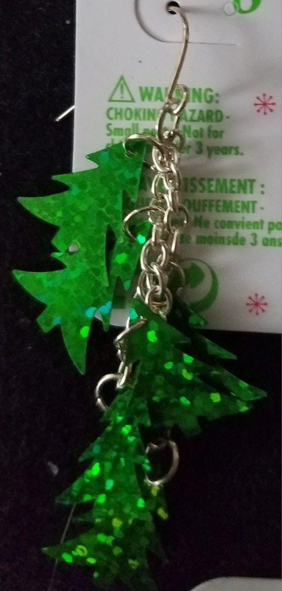Sparkling Christmas tree irredescent dangling earrings. 1 for $3 OR 2 for $5. There is lots of custom Christmas jewlery for sale. Lπk at my page for many NEW Christmas items π. Makes great Stocking Stuffers π.