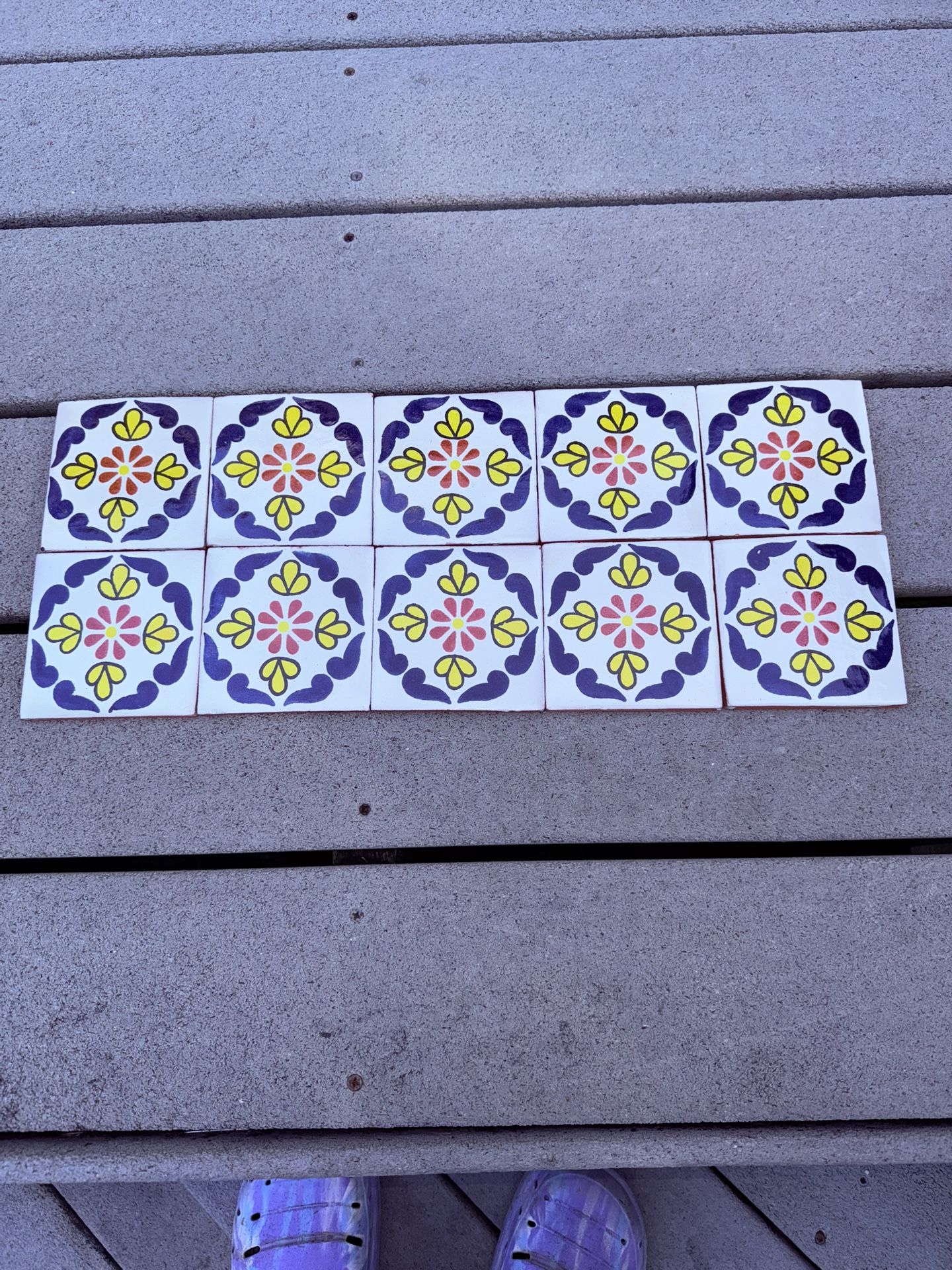 Cleaning out garage. Have 10 vintage 4” hand painted accent tiles for fun project like kitchen, bath, fireplace, table or just about anywhere you want a pop of color. $15 cash only. No apps please.