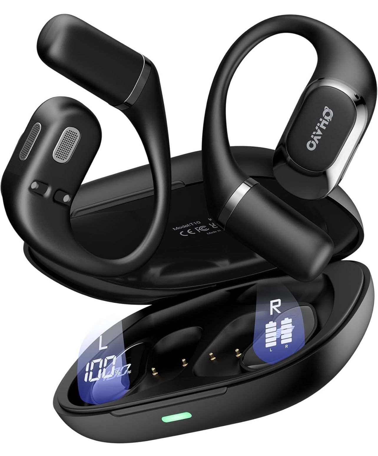 Open Ear Headphones,Over Ear Earbuds with Ergonomic Earhook,Bluetooth Headphones 5.4 with Smart Digital Display,40H Playtime,IPX6 Waterproof,Touch Con