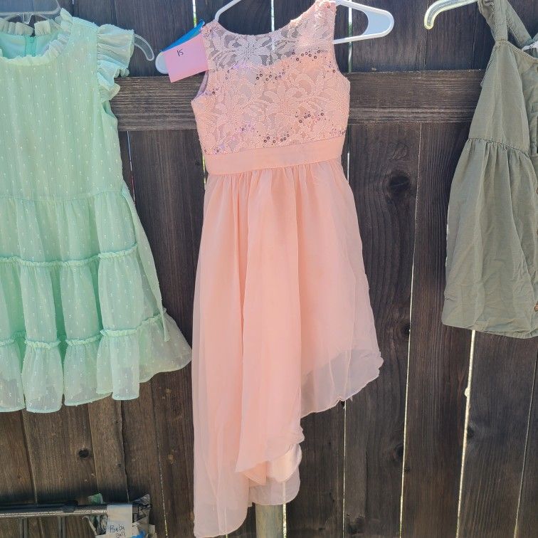 Asymmetrical, 6T Soft Pink Girls Flower Dress, Wedding Dress