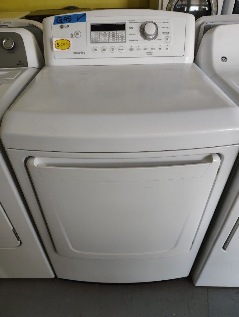 The gas dryer is working great Lots of settings and controls Get all your clothes right every time Comes with warranty Msg me today