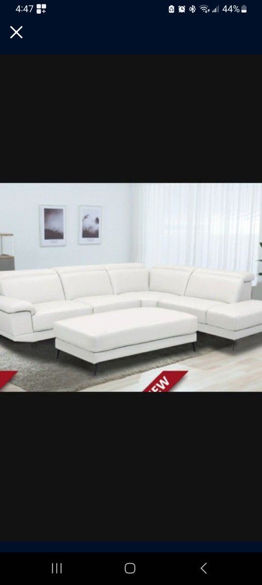 Rio White Leather Sectional Sofa W/Ottoman---$899---Limited Inventory!!!---No Credit Needed Financing Available