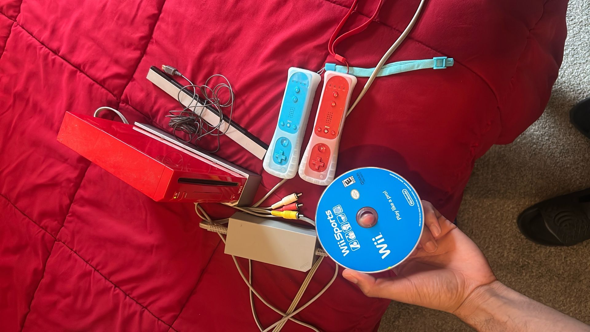 Comes with Wii sports games including bowling, baseball, tennis, golfing and boxing. (2 remote controllers included)