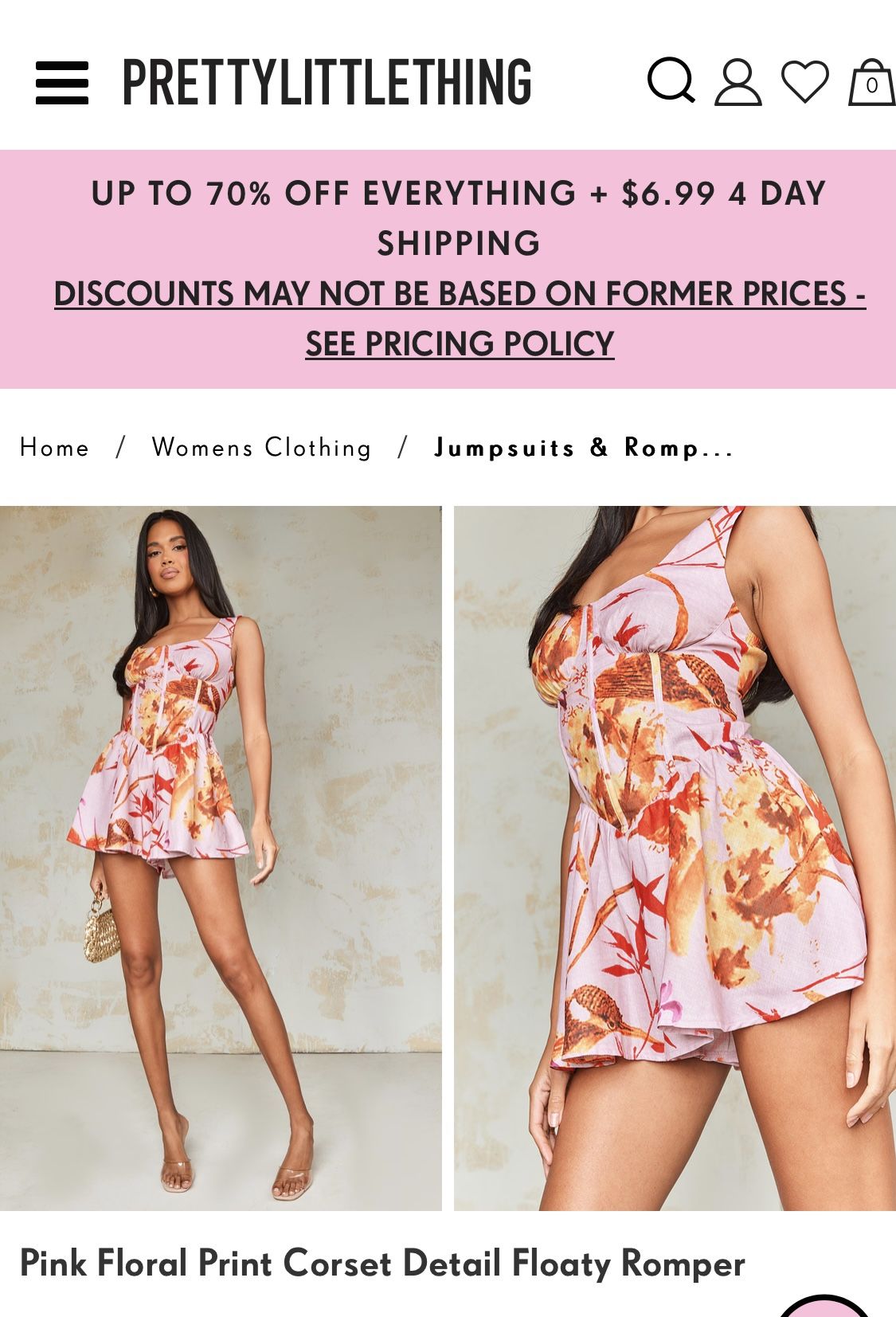 Pink Floral Print Corset Detail Floaty Romper. Brand new with tag. Size US 10.
