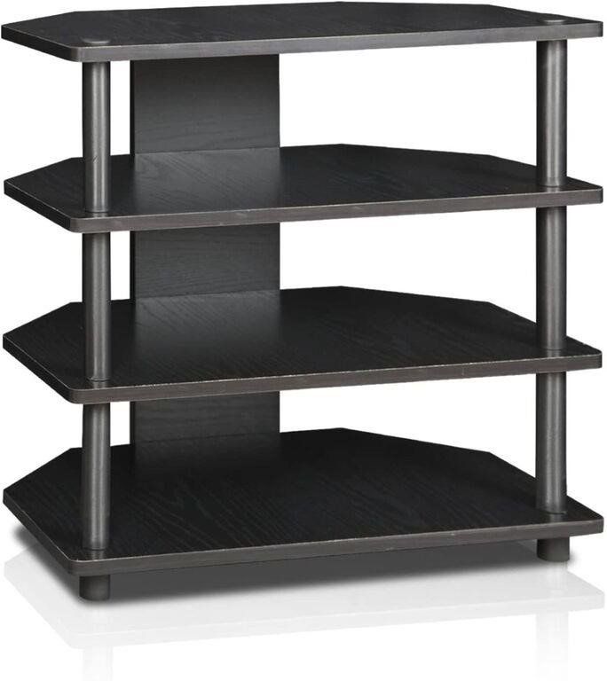 Furinno Turn-N-Tube Easy Assembly 4-Tier Petite TV Stand , Blackwood Wood and Pvc Simple stylish design: Tv stand with display shelves for all your entertainment accessories Material: engineered wood Fits in your space, fits on your budget Sturdy on flat surface. Easy no tool assembly, even a kid can do it Hold TVs up to 25 inches. Dimension: 23.7 (W) x 23.2 (H) x 14.6 (D) Inches