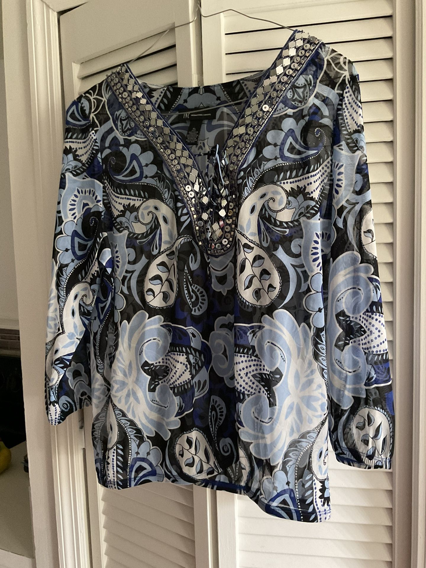 This is a stylish blouse that goes from work to dinner. From a smoke and pet free home. Cash only, please.