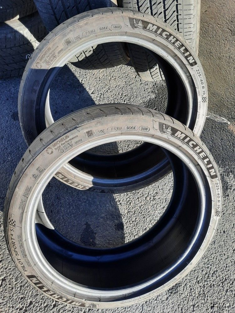 For sale TWO nice lightly used 255/35/19 Max Performance Summer tires 255.35.19 Michelin Pilot Sport 4S star*bmw 255/35ZR19 96Y XL with approx 7/32nds or 70% of tread life left (out of 9./32nds new) for $350 FIRM for the pair of lightly used tires NO OFFERS Retail for over $300 a tire ... 299.⁹⁹ BMW M240i M340i 3-series and 4-series M40i oem rear 19" Max Performance Summer tires Very even tread wear no damages / no repairs DOT2222 dot2322 Michelin Total Performance Radial tubeless ZR rated / Y speed rated XL extra load 307u 2c007(contact info removed) I also have For sale TWO nice used front 225/40/19 Max Performance Summer tires 225.40.19 Michelin Pilot Sport 4S star*bmw 225/40ZR19 93Y XL with approx 5-6/32nds or 50-60% of tread life left (out of 9.5-10/32nds new) Some camber wear >see last 4 pics no damages no repairs dot3119 for $200 FIRM for the pair NO OFFERS Thanks 603u (contact info removed)