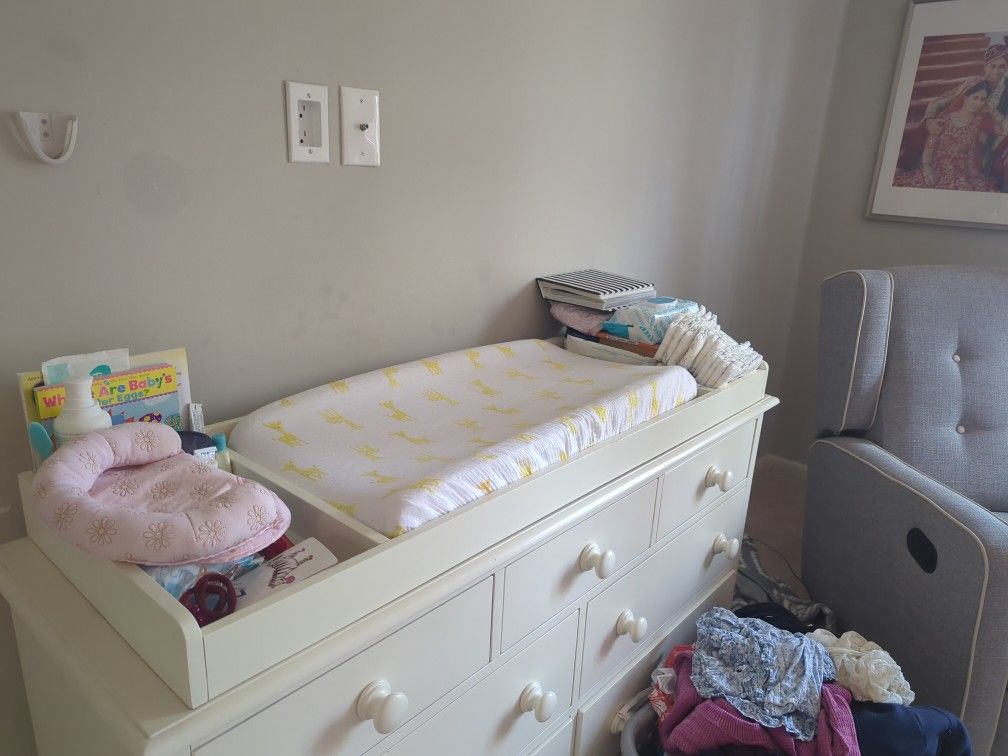 Minimal wear/tear on one edge, other edge (facing wall) appearance brand new