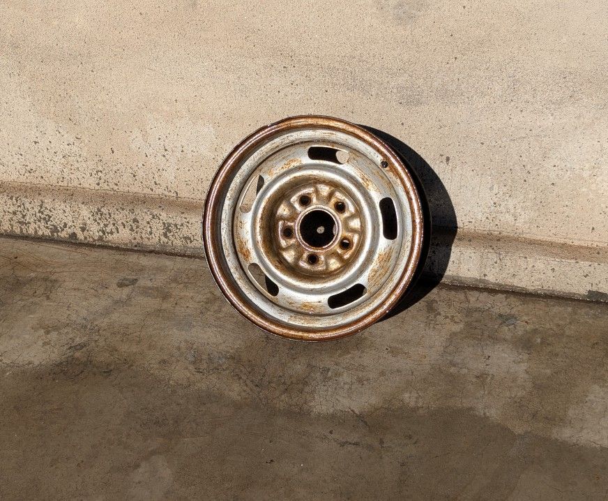 $10... original 15 inch rally rim came off 68 Impala 5 lug 5x4.75 Phoenix AZ 16th st and Buckeye Classic OG Old-School Factory 13x7 Spoke Wire Wheels USA Muscle Lowrider 14x7 G Body