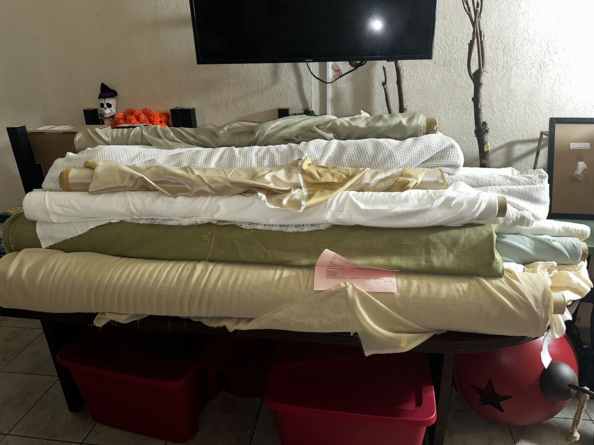 All different kinds, Knits, Silks, Canvas, etc. Have as $10/ roll but give me your best offer if you want some or all will def do discount :)