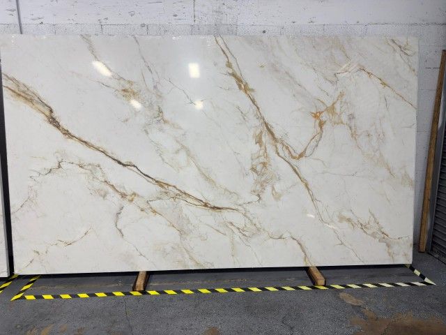 Beautiful Quartz Calacatta Sunrise 138x79 3CM SUPER JUMBO. $1850 per slab For all your #Countertops #backsplash #accentwall #columns #vanitytop