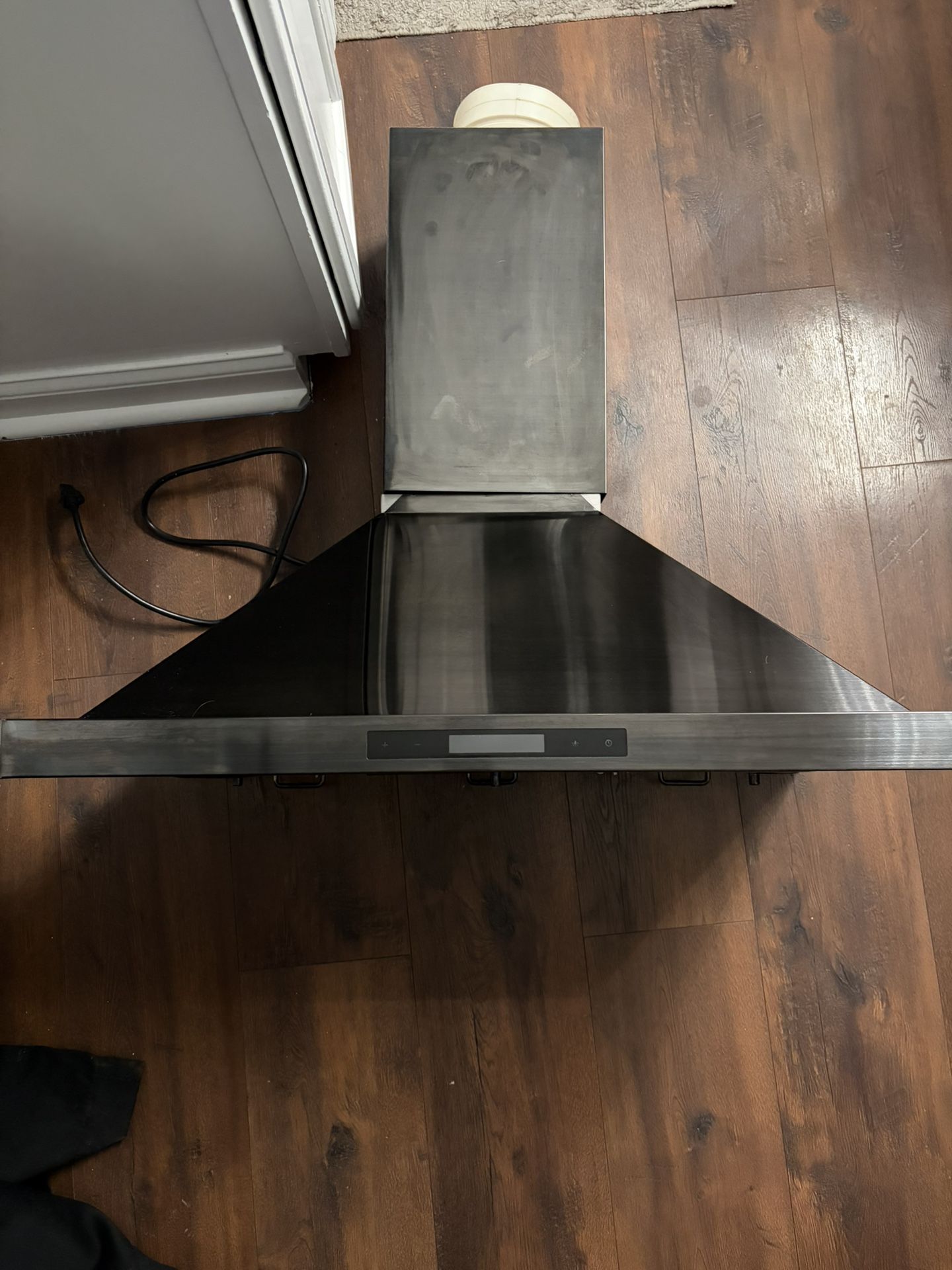 Very minimal use, black stainless steel, Absolutely nothin wrong with it, switched it out for reg stainless steel appliances. Retail $550-$600