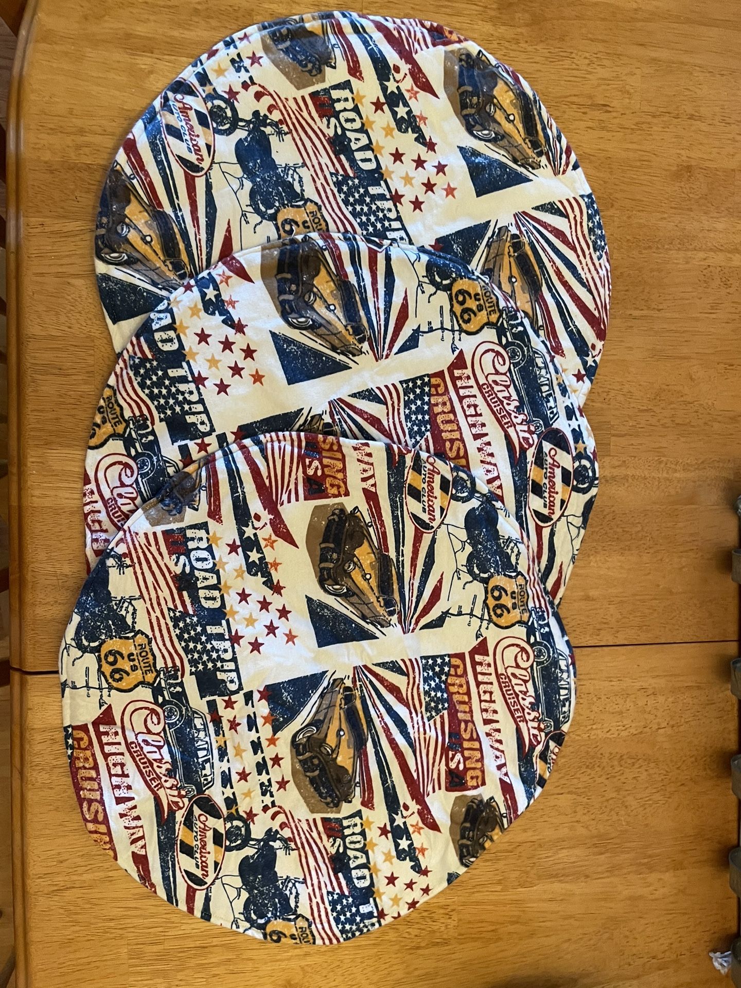 Three hot rod placemat Route 66 Nostalgic Handmade Dimension are 17 inches round