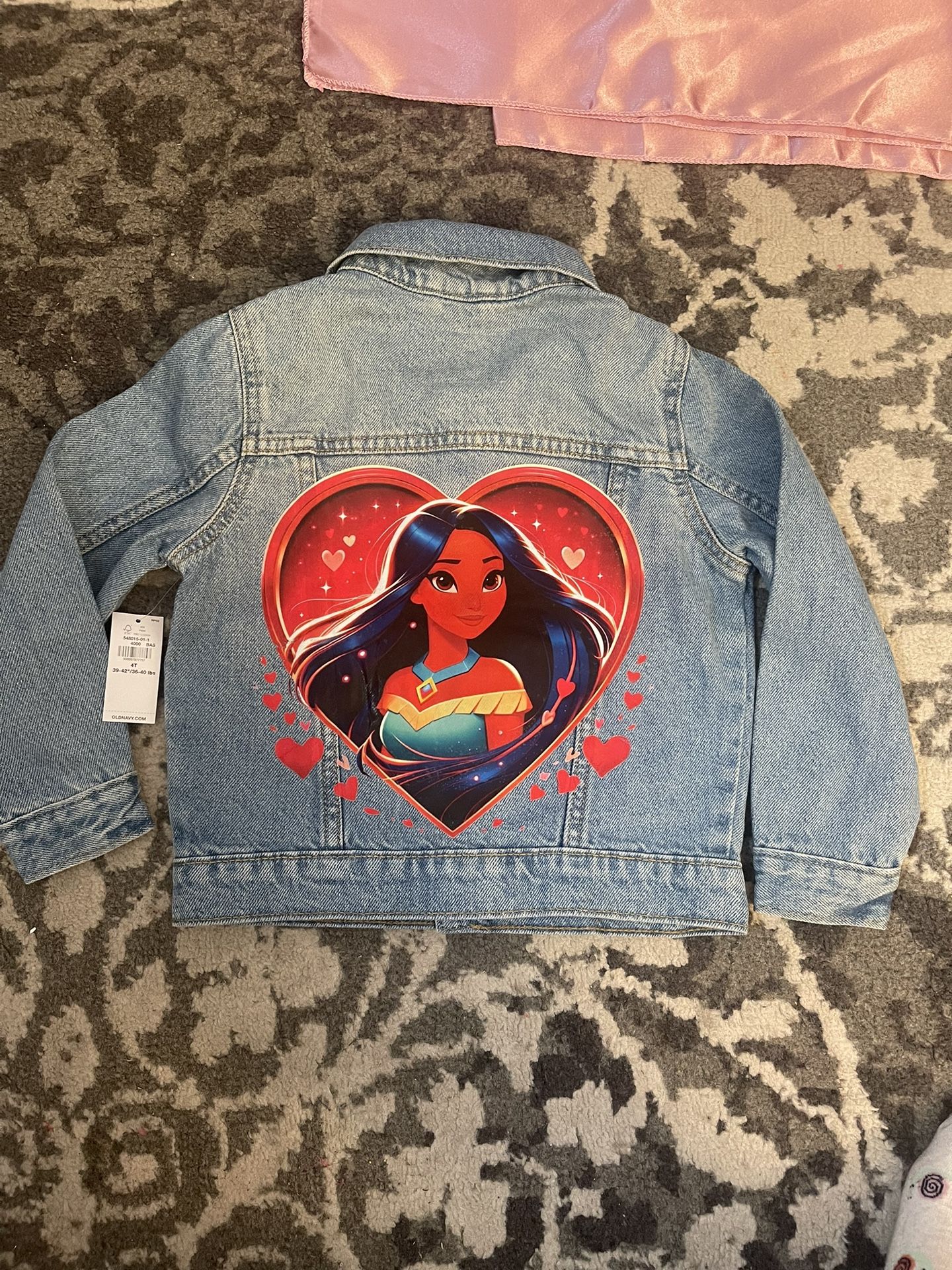Custom made -Pocahontas’s Jean jacket Selling it for cheap because I pressed it too hard on one side . As is!!! Markdown to $20 final price It looks good but if you see it from close you can see the defects