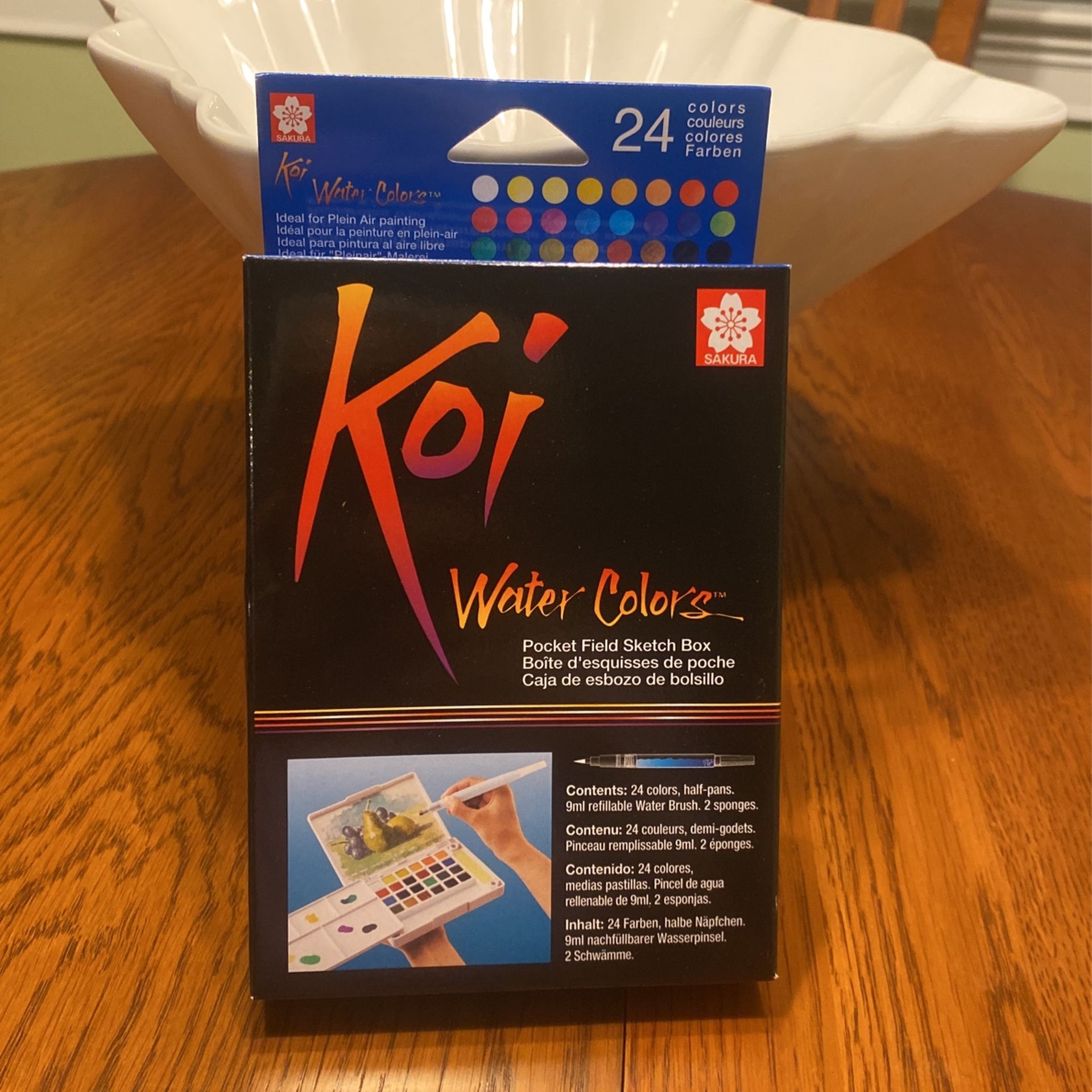 New in Box Great compact kit when traveling 24 colors Comes with refillable water color brush and 2 sponges