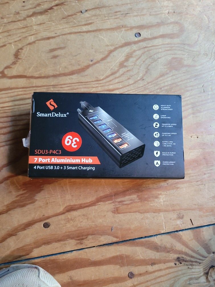 7 port aluminum Hub. 4 port USB 3.0 + 3 smart charging.