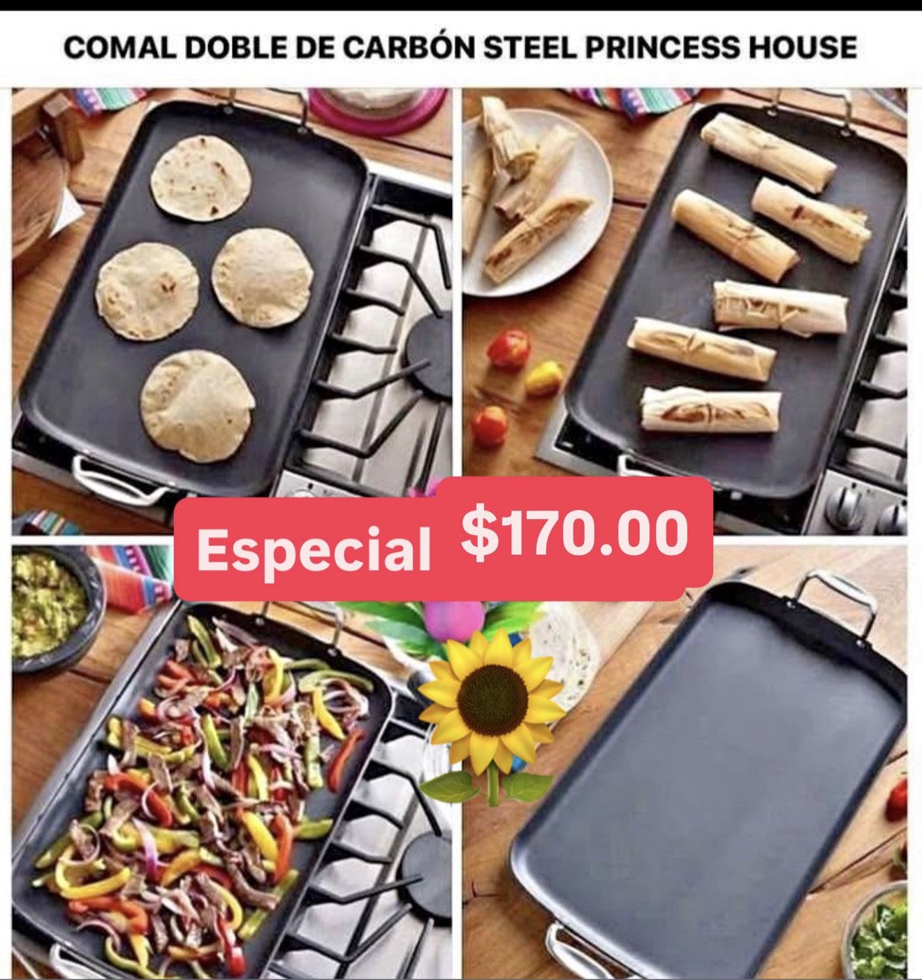 Comal Doble Nuevo Línea Acero De Carbono Cosina Tortillas Carne Asada Fajitas De Pollo Camarones Variedad De Comidas Princess House Ventas Finales