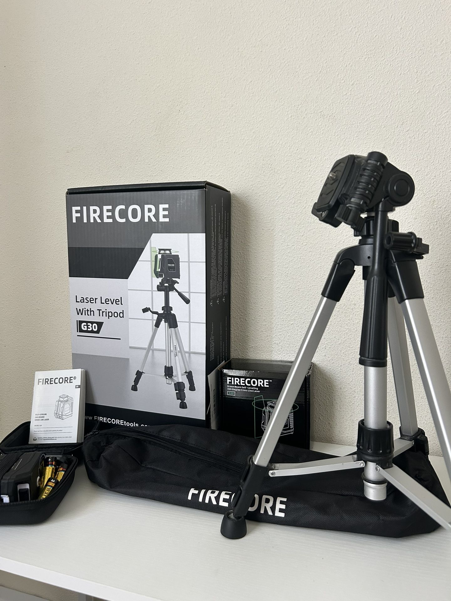 Vendo este nivel láser con trípode marca Firecore modelo G30. Viene completo, con su estuche, manual, baterías y accesorios.