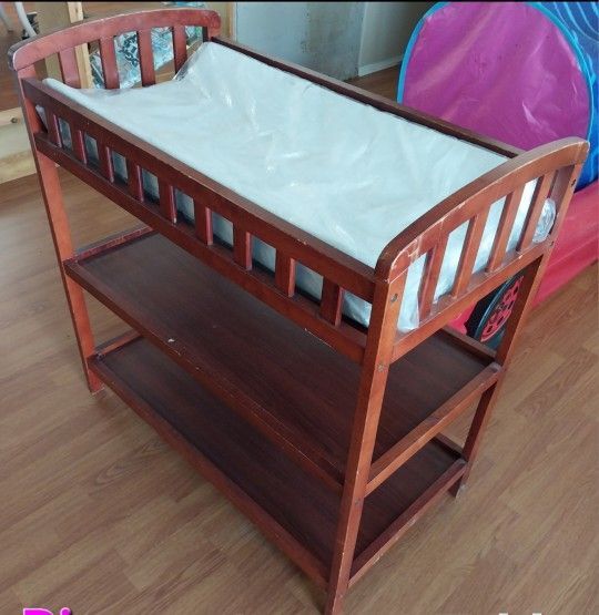 Pickup in Vista off of Emerald Drive... Graco Solid Cherry Wood Changing Table. Has 2 lowers shelves. Has Pad included with safety straps attached. Condition exactly as pictured. Last photo is how we had it decorated. Delivery upon request, just pay for fuel. Cash only NO VENMO OR ZELL Sorry.