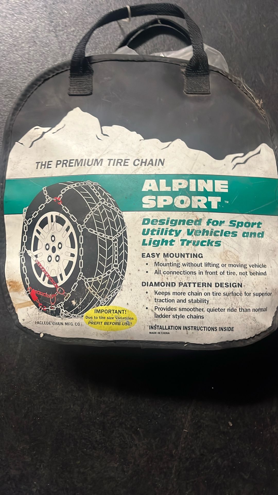 Used Snow Chains These were only used once!... Easy mounting without moving vehicle Fits on sport utility vehicles, light trucks and sedans cars