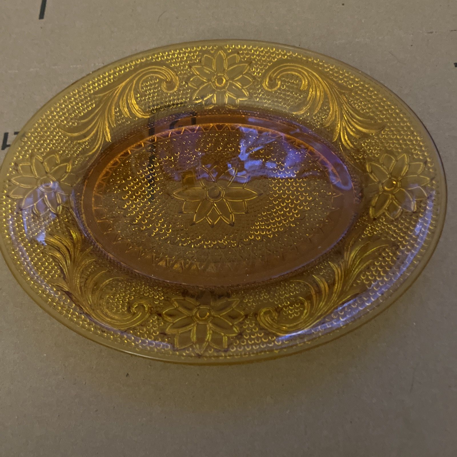 Amber Glass Snack Plate. Indiana Tiara Sandwich Pattern, Sandwich Plate 8.5/7