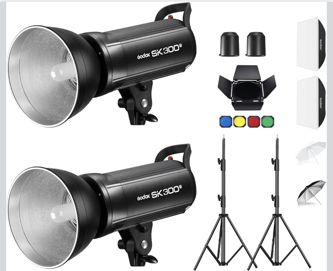 Godox 2X SK300II Studio Flash Strobe Kit:2.4G 600Ws Speedlite Flash Monolight with Bowens Mount for Studio Shooting,Location & Portrait Photography wi