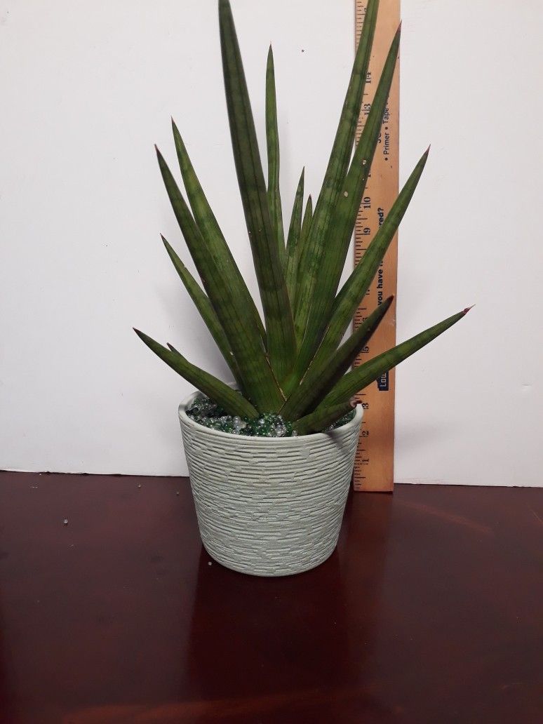 Sansevieria transferred in a ceramic 6"pot with a cristal dressing