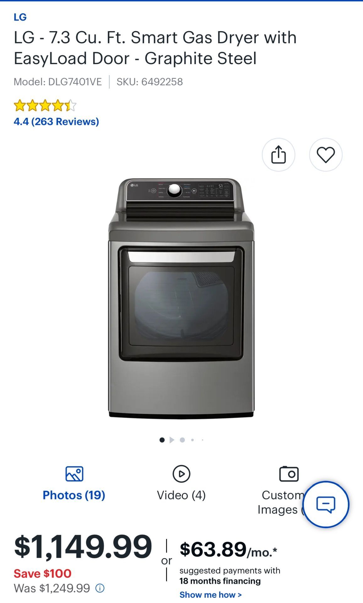Brand new never used. $1,082 in store. Asking $450 REDUCED now asking $250 Gas LG dryer