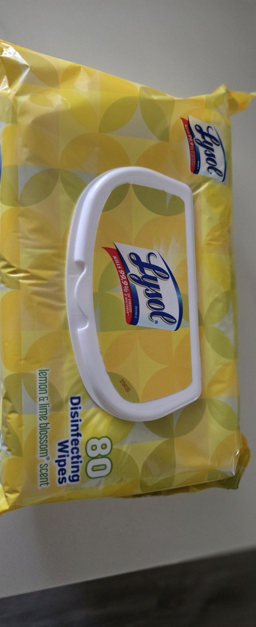 I have new cartons of lysol lemon scent disinfectant wipes for sale. 6 packages in each carton, 80ct wipes in each package. $12 each carton.