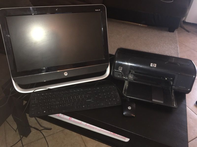 Like new HP desktop. Tower is built into screen. Super space efficient. Nothing wrong no viruses. Just no longer need. Already have laptop. Can plug in and turn on for you. Take desktop alone for $300. Printer is also HP Deskjet D1660. Have CD for install, will also throw in brand new packs of ink. Have no use for these. Take printer alone for $50. Great for daily computer use or homework use for kids. Take everything for $320!