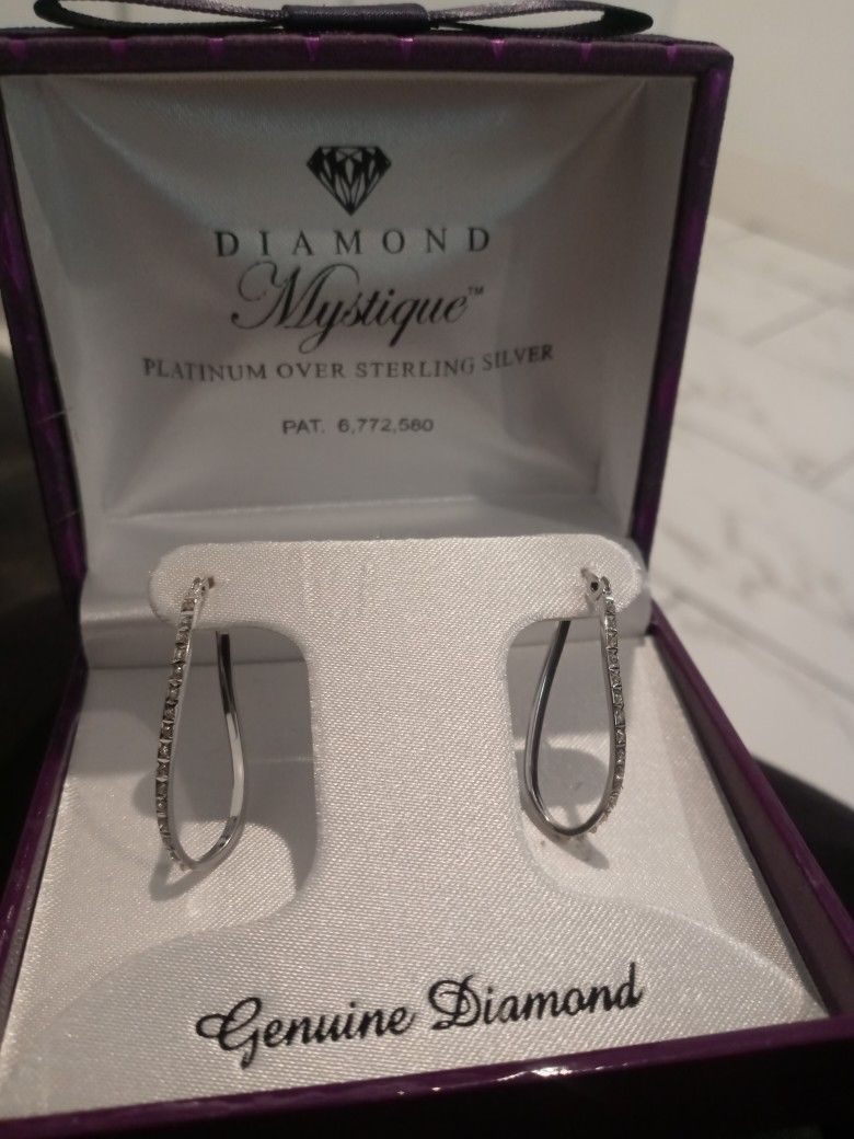 Diamond Mystique Platinum over Sterling silver earings. Brand New- Never out of box.