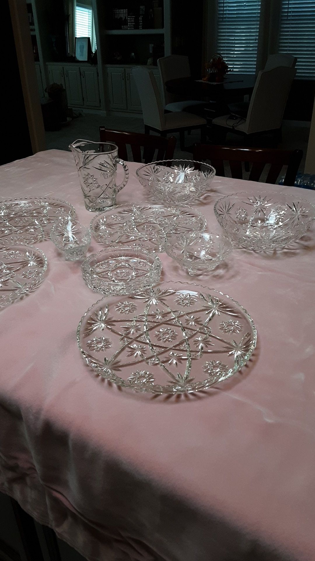 1960 Anchor Hocking "Star of David " heavy prescut glass serving pieces. Beautiful! Great for a wedding or reception or the holidays coming up. I have several pieces! I will sell separate or make offer for entire group for $100. I live in East Mesa.