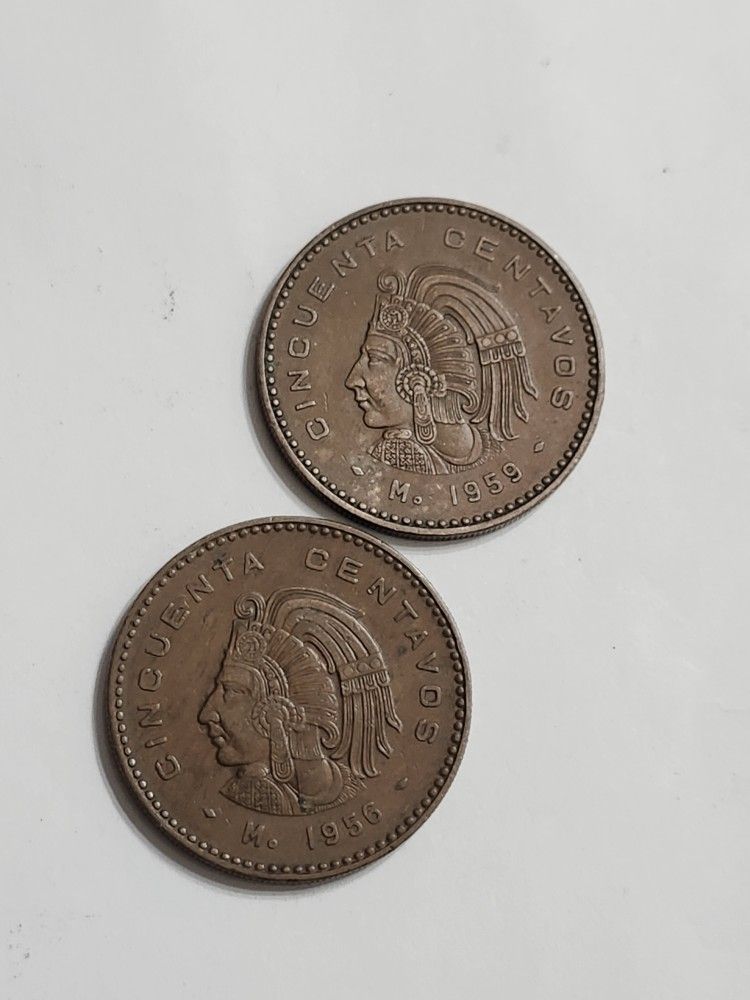 1956 , 1959 Mexico 50 Centavos - Cuauhtemoc