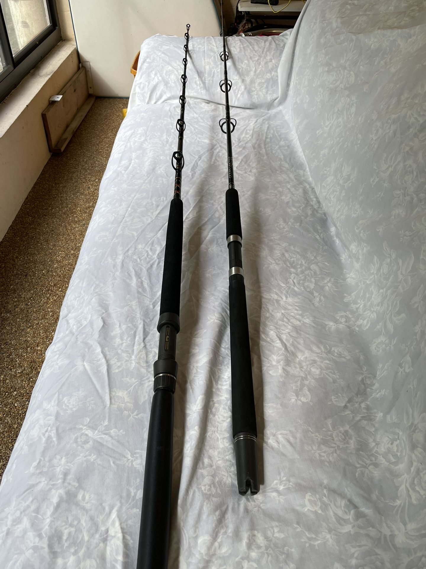 2 spinning rods -2 conventional rods - Fuji guides Basically brand new - can sell in sets of two ,
