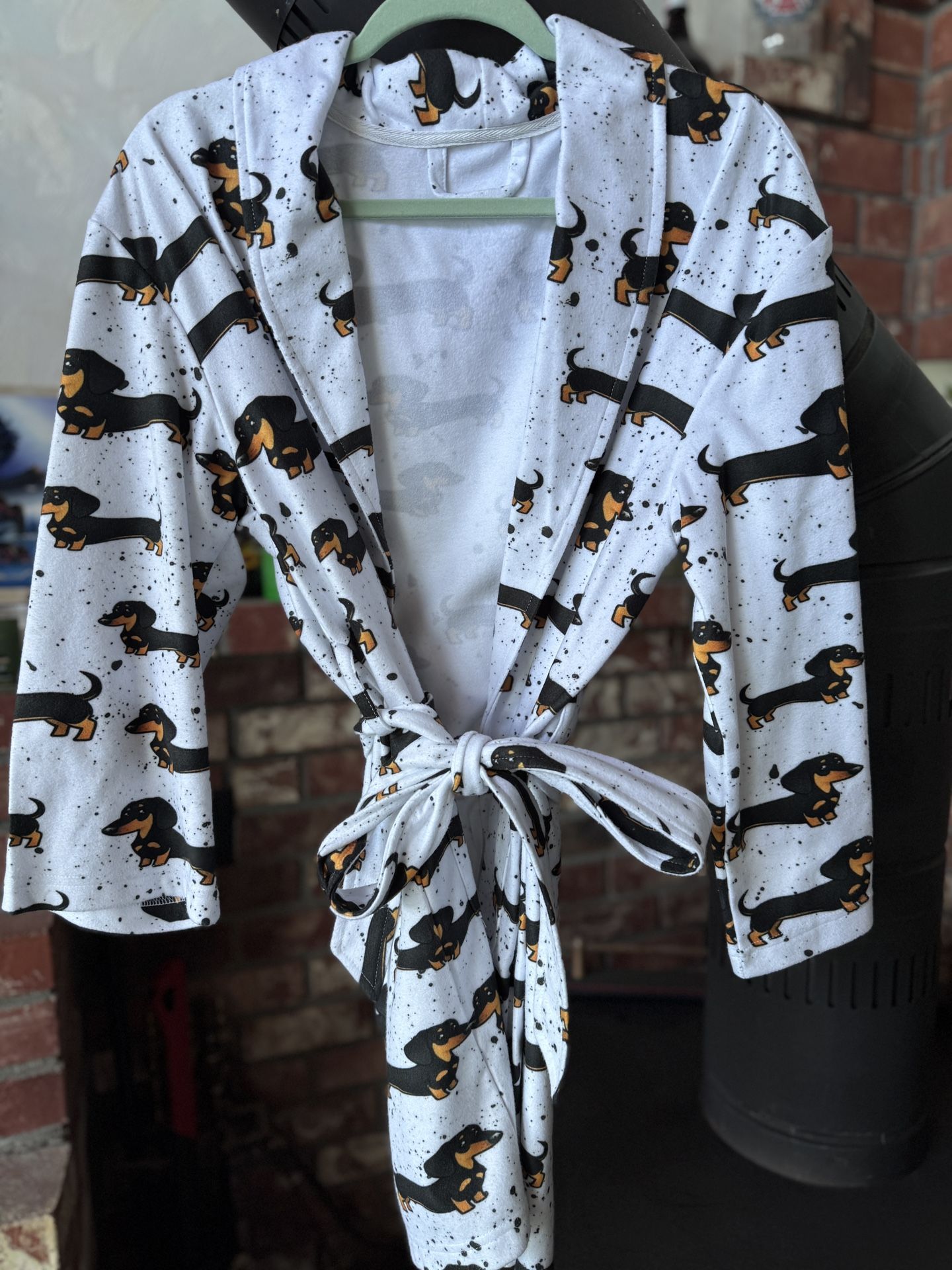 Women’s microfiber robe - dachshund print. No tag but probably a S/M. Never been worn - been hanging in my closet for 5.5 years.