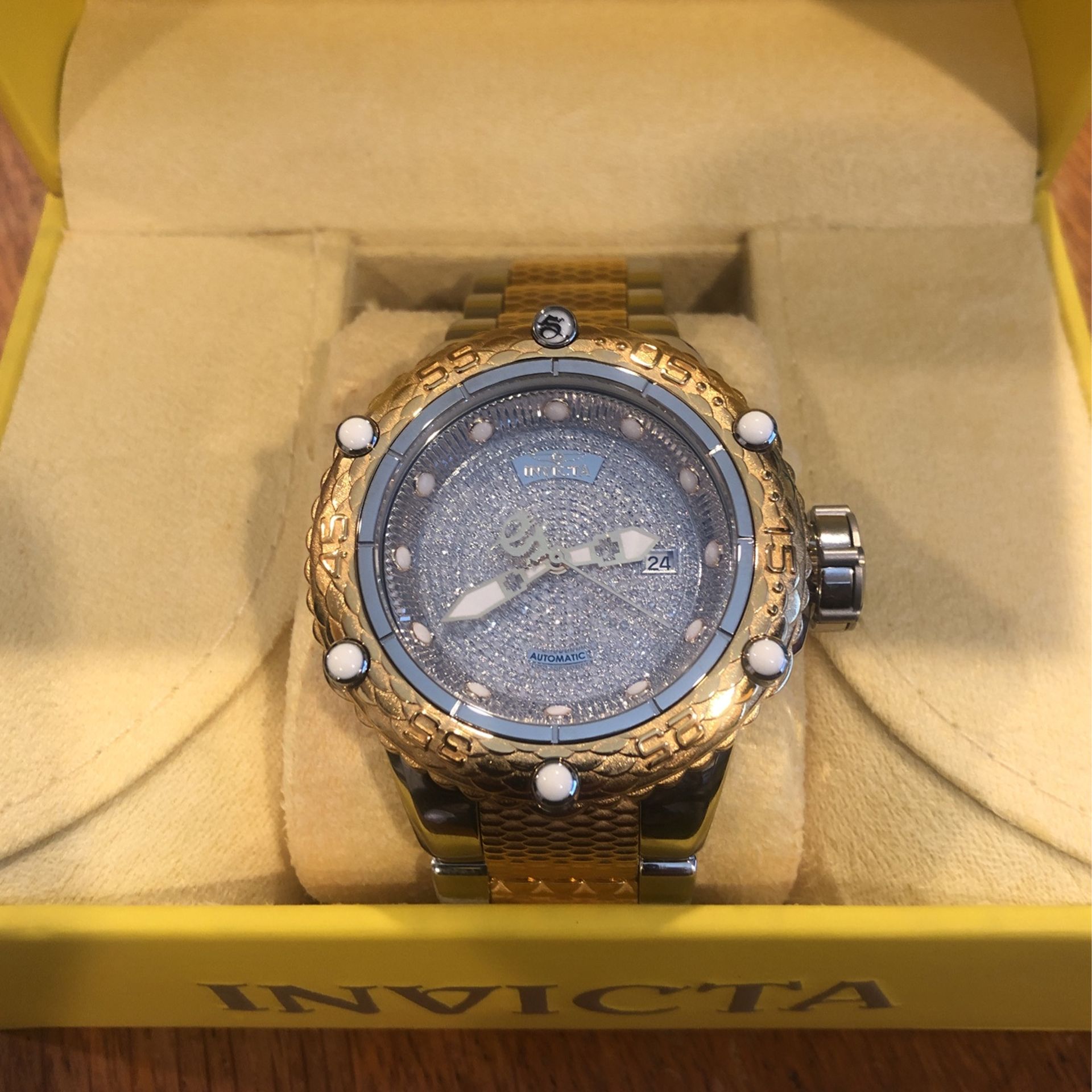 Brand new Invicta automatic diamond watch. Has 1.19 ctw of diamonds on the dial. Two-tone stainless steel bracelet. Which I can size for you. NH35A Automatic movement. $1700 or best offer. Shipping available