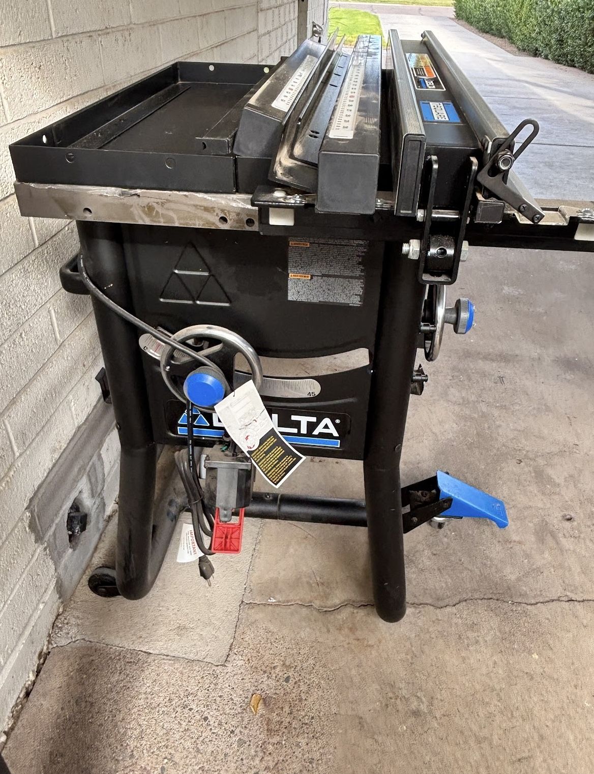 Selling a Delta 36-725 T2 heavy-duty 10-inch table saw paired with a WEN 3-speed remote-controlled air filtration system — an excellent setup for woodworking, DIY projects, or a professional home shop. • Delta table saw is barely used and in excellent working condition • WEN air filtration system has never been used • Powerful 15-amp motor with smooth, accurate cutting • Ideal for hobbyists or professional workshops • Clean, well-maintained, and ready to go • Local pickup only Just trying to get rid of it, don’t use it. Message me with any questions. Serious buyers only.