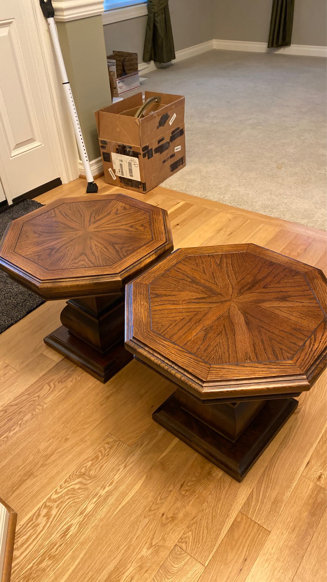 2 Lane furniture Walnut mid century hexagonal accent end tables