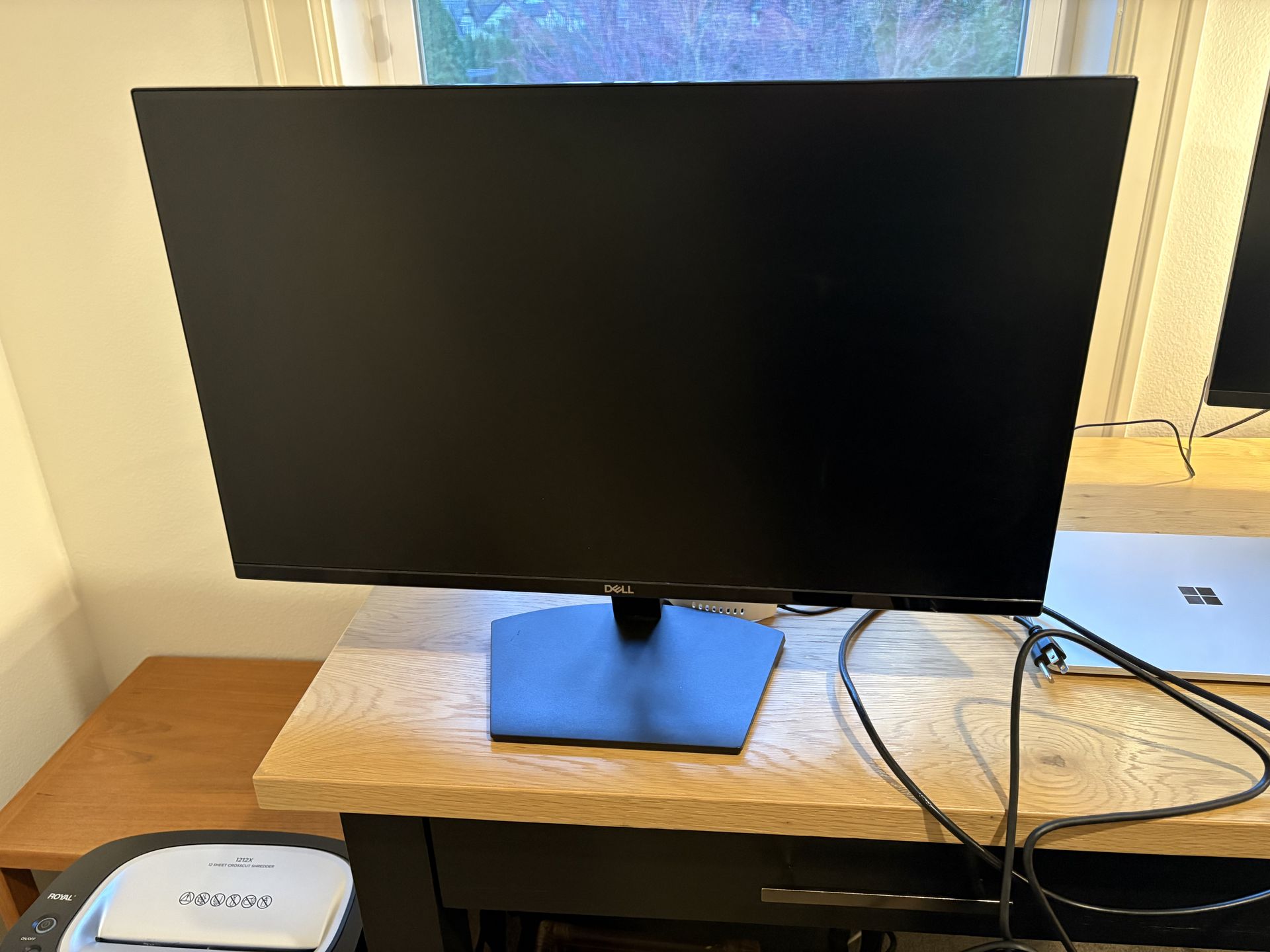 Dell flat panel 27” monitor. Includes power cord and HDMI.