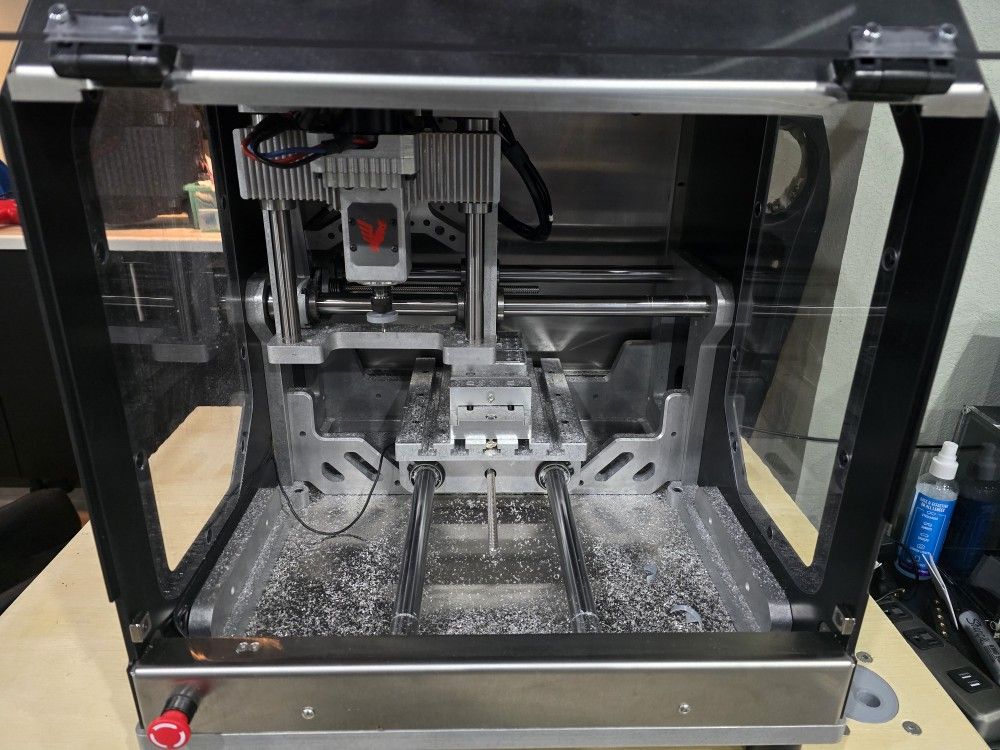 Selling my Bantam Desktop CNC, a compact yet highly precise milling machine ideal for prototyping, small-batch production, and personal projects. Widely used by engineers, makerspaces, and schools, this machine is known for its reliability, accuracy, and very approachable workflow. The Bantam CNC easily machines aluminum, brass, plastics, hardwoods, and PCBs with excellent surface finish and repeatability. Its fully enclosed design keeps chips contained and makes it suitable for a home shop, office, or classroom. Key Specifications: Work Area (XYZ): ~7 in × 9 in × 3.3 in (178 × 229 × 84 mm) Table Size: ~9 in × 11 in Spindle: 10,000–28,000 RPM (automatic speed control) Spindle Motor: 300W DC Positioning Accuracy: ±0.001 in Maximum Feed Rate: ~60 in/min Materials: Aluminum, brass, plastics, hardwoods, PCBs Software: Bantam Tools Desktop Milling Software (USB connection) Power: Standard 120V outlet Condition: Well cared for and fully functional. Normal cosmetic wear from use, but nothing that affects performance. Runs smoothly and has been very reliable. Includes: Bantam Desktop CNC milling machine Power supply and USB cable This is an excellent opportunity to get into CNC machining without the footprint, noise, or complexity of a full-size mill. New units are costly and often backordered—this machine is ready to work immediately. Happy to answer questions.