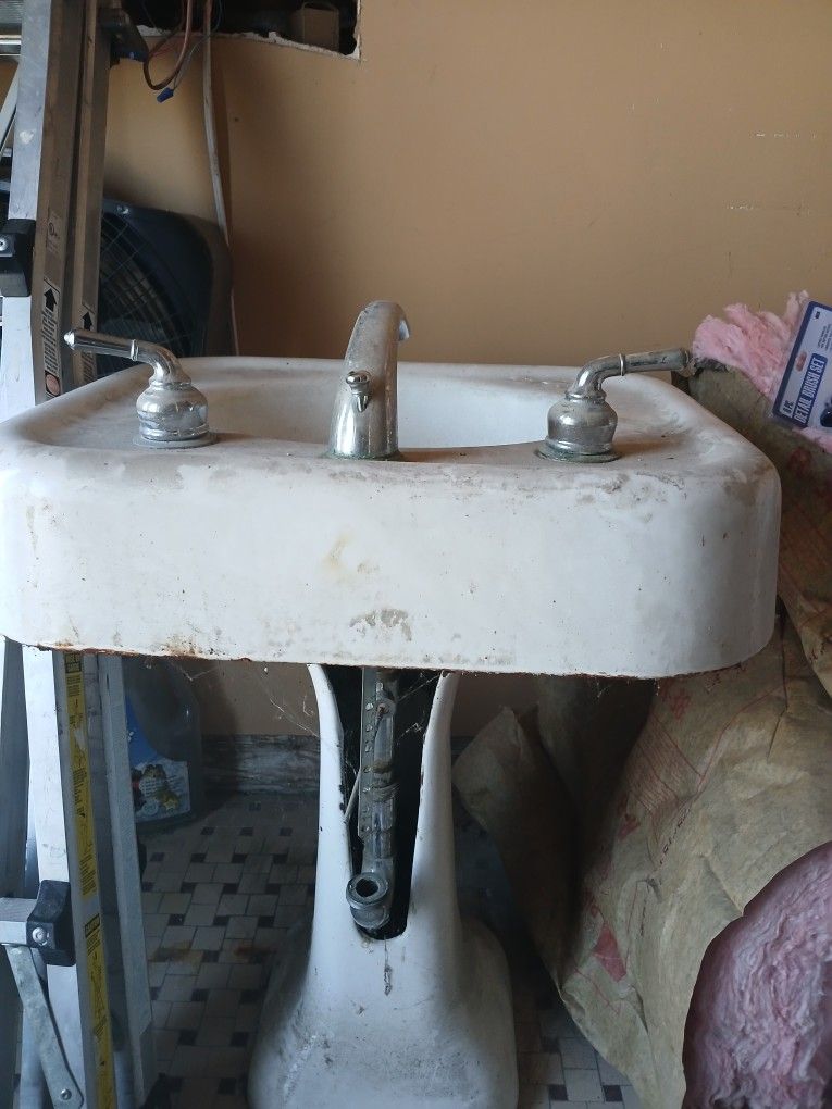 Vintage Porcelain Over Cast Iron Pedestal Sink
