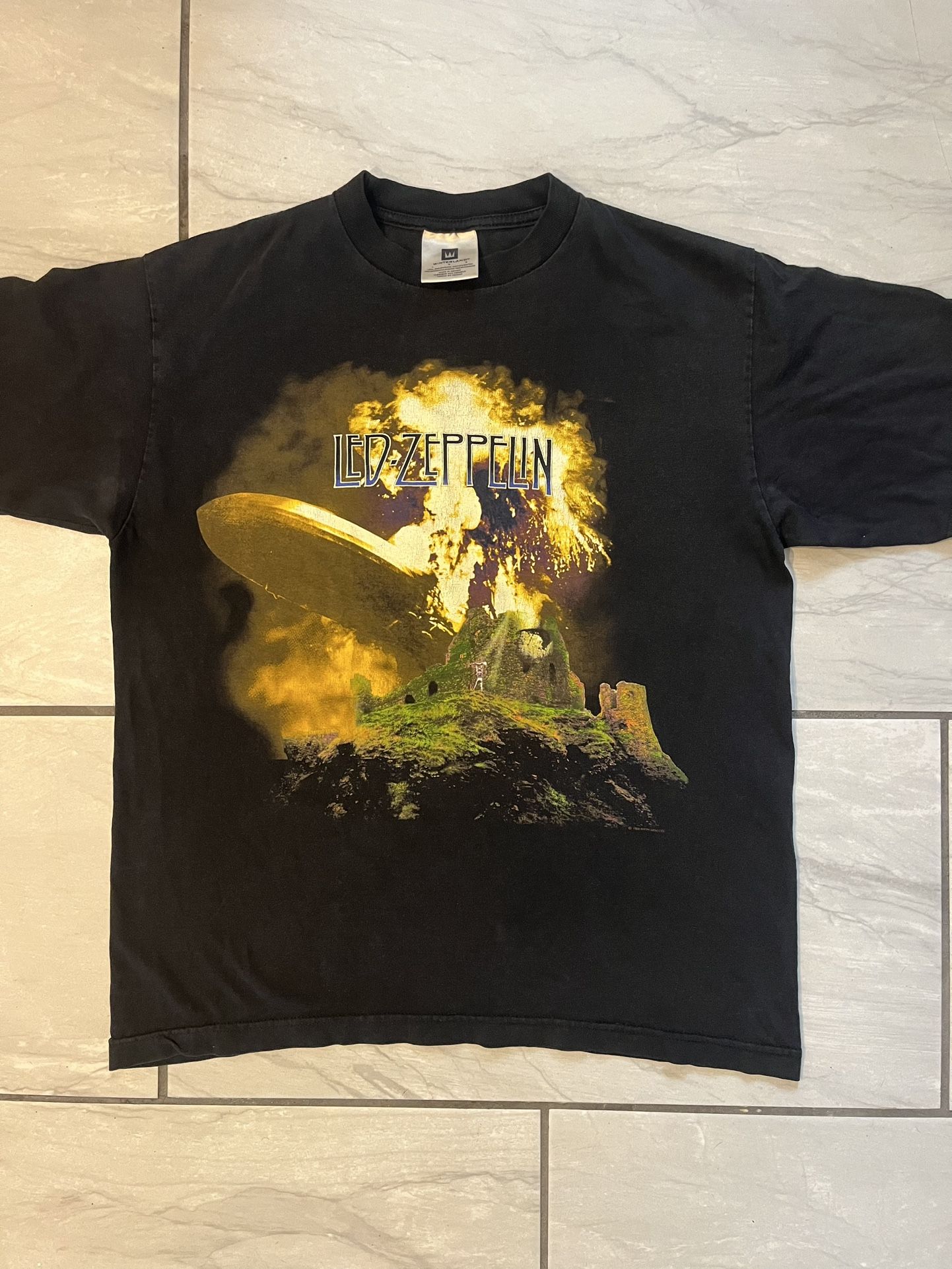 Great condition 1999 LED zeppelin shirt sz large. Winterland rare tag! Double sided. Measurements: 21”x 26”. This Vintage Winterland Led Zeppelin 1999 Short Sleeve T-Shirt is a must-have for any fan of the iconic band. The multicolored shirt features a solid pattern with a happy character, perfect for all seasons. Made of knit fabric with a crew neck and regular fit, this shirt is a vintage piece with a logo accent on both sides. Celebrating the 90s theme, this t-shirt is a unique addition to any man's wardrobe, ideal for winter, summer, fall, or spring wear. Made in Mexico, this shirt is a timeless treasure for collectors and music enthusiasts alike.