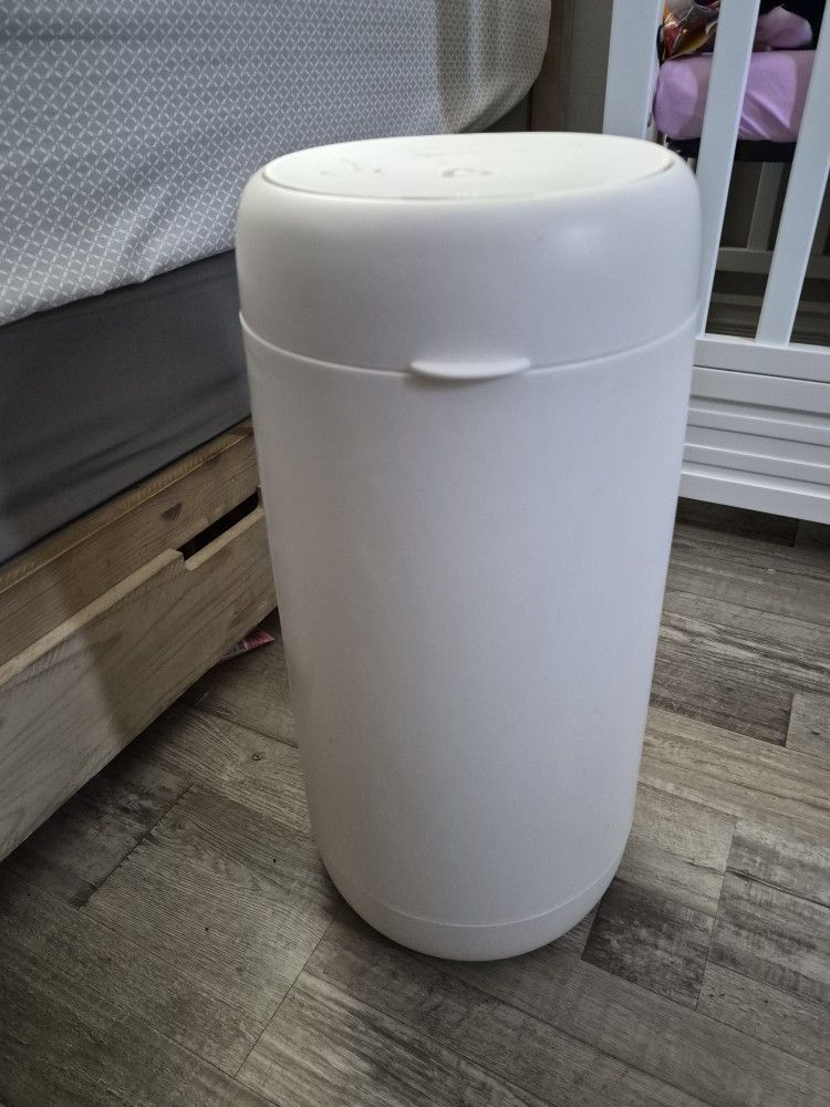 Munchkin flex diaper pail Used but still good condition My toddler shoved diapers cream in there without a bag (white stains on the inside) not dirty Has fit Munchkin and up&up refill bags (thats all I've tried) did not fit diaper geenie bags Its been cleaned and I'll wipe down again before pickup