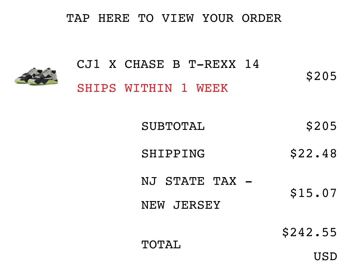 Size 14 • Brand new, deadstock Travis Scott x Chase B collaboration Official release — December 15 In hand within 1 week Local meet-up or shipping CJ1 X CHASE B T-REXX 14
