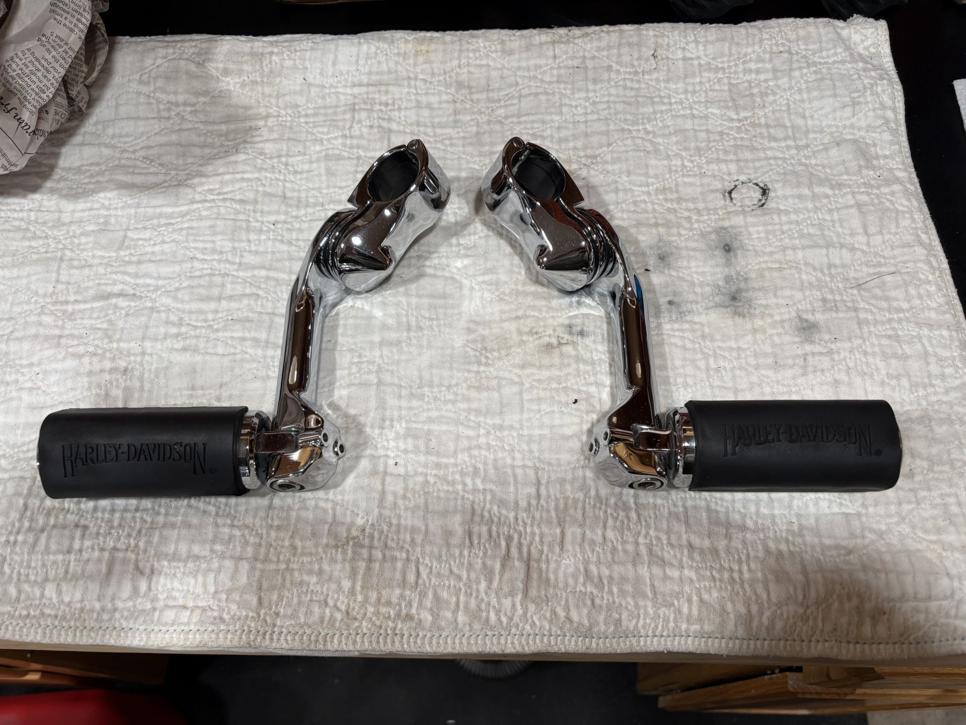 Harley highway pegs, used, one scuff mark. (pictured) Not new or show quality, but nice and clean otherwise.