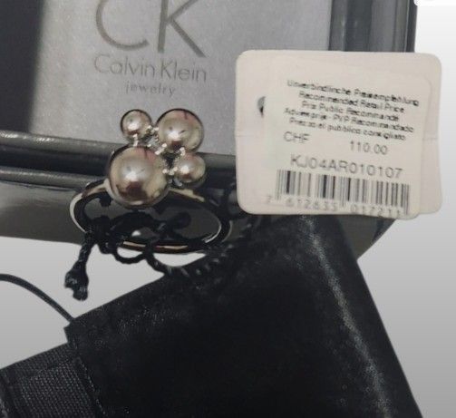 Calvin Klein Elegant Rotatable Sterling Silver Charm Ring.