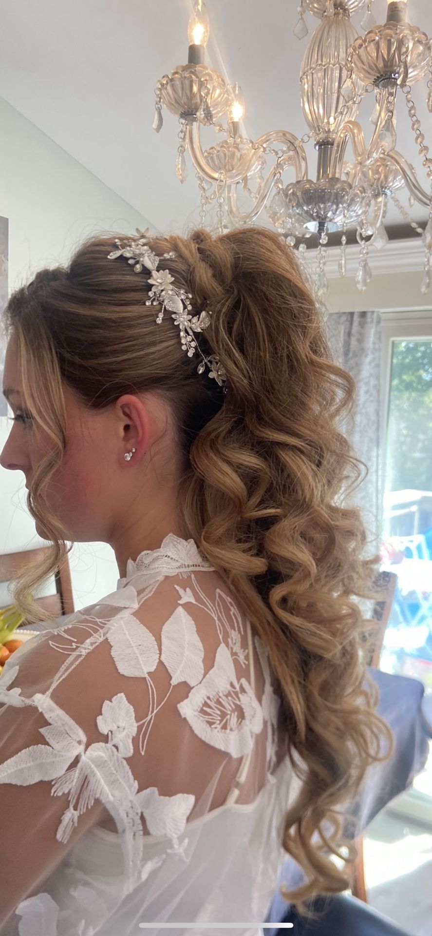 Hair piece bought and used for my wedding. It is Bendable to place easily in hair, got it from Fantasia bridal in rocky point.