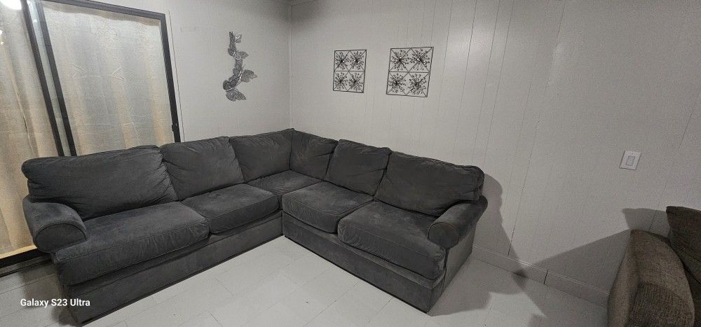 Comfortable gray sectional sofa in good condition. Dimentions 106" x 106"